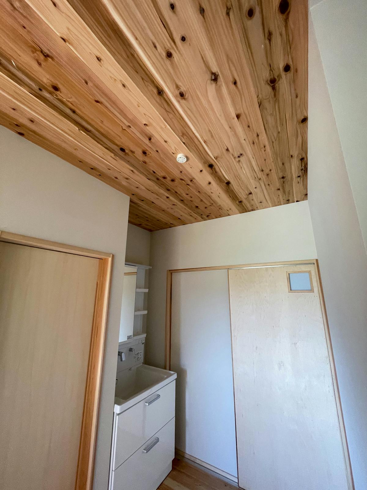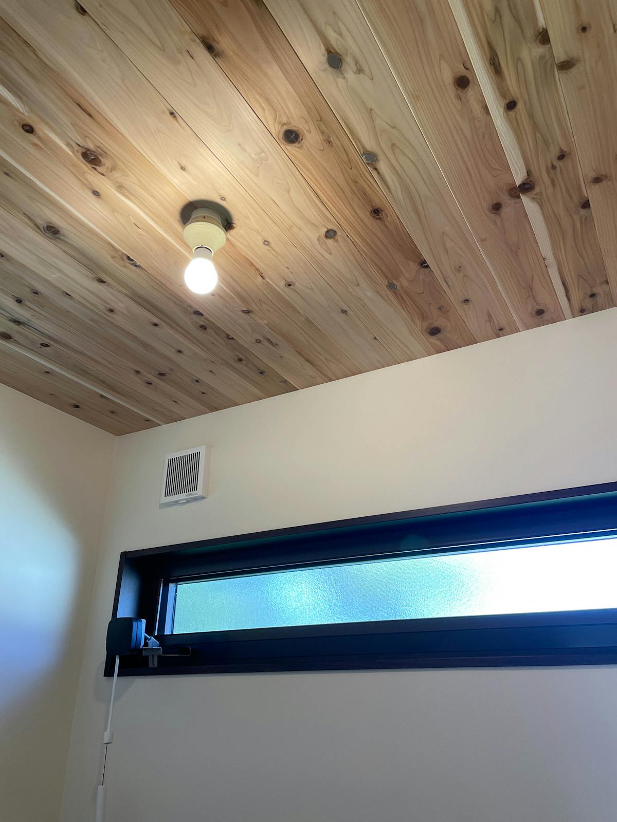 今回の施工では、床と天井に国産材の秋田杉を使用し、自然な風合いと優しい室内空間を実現しています。木目や節の表情が豊かで、光の当たり方によって陰影が変化し、落ち着きのある空間に仕上がりました。長期使用にも耐える耐久性を確保しつつ、入居者や家族が快適に過ごせる雰囲気を重視した施工です。