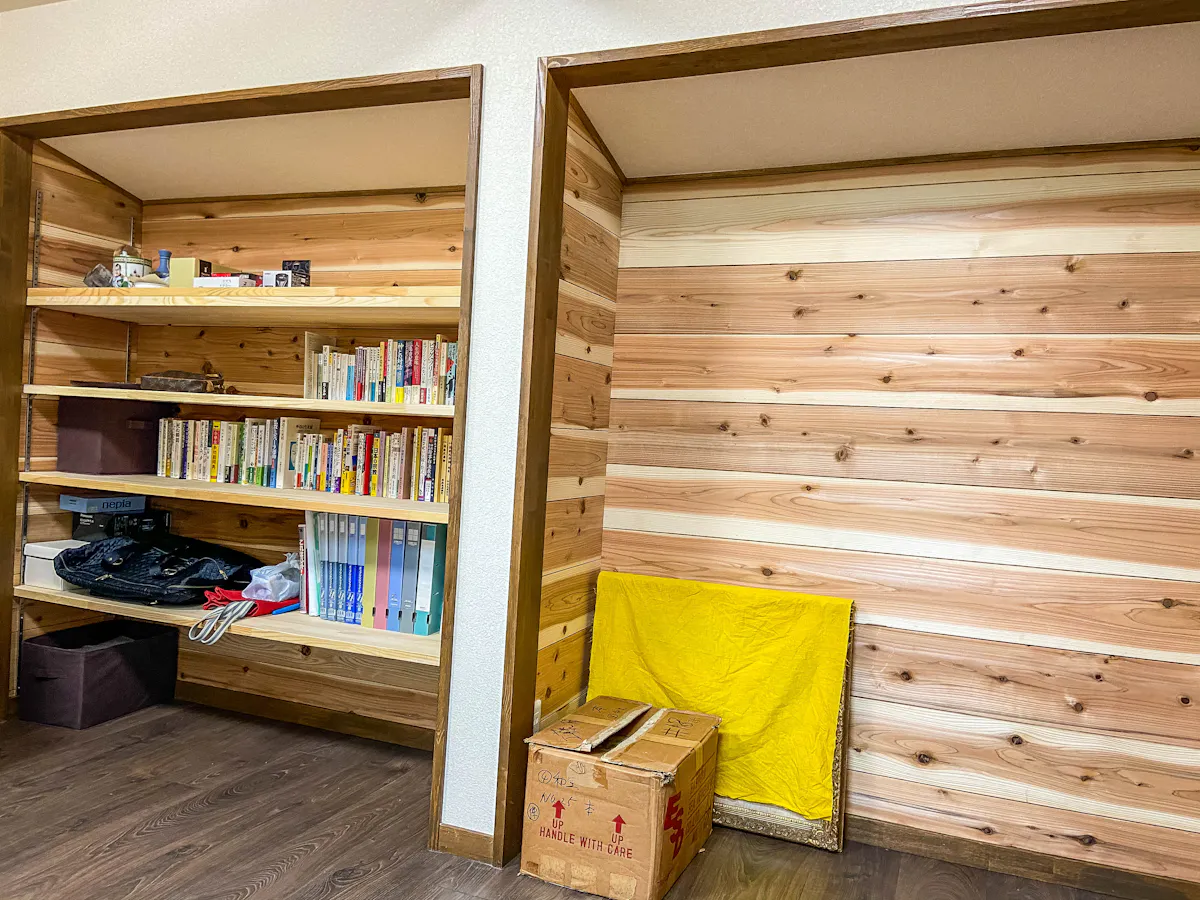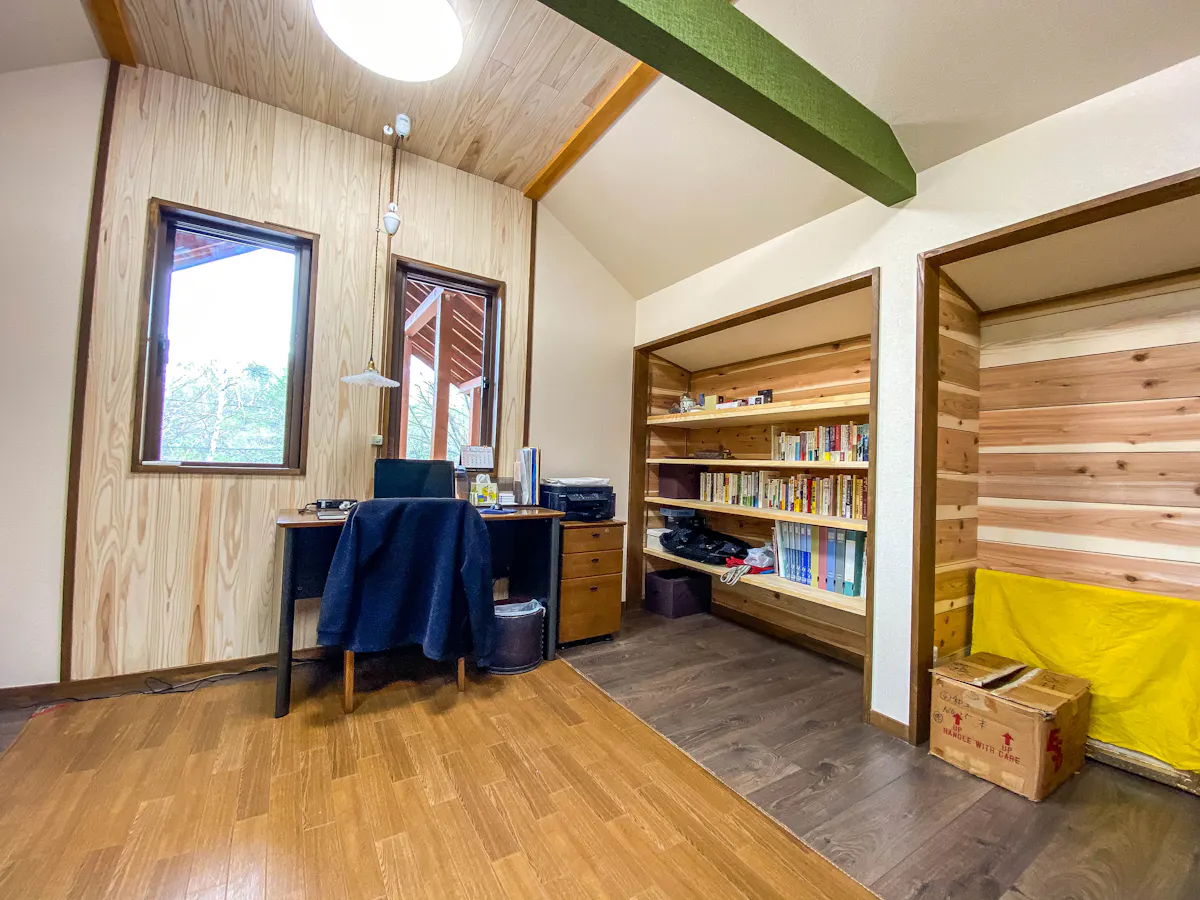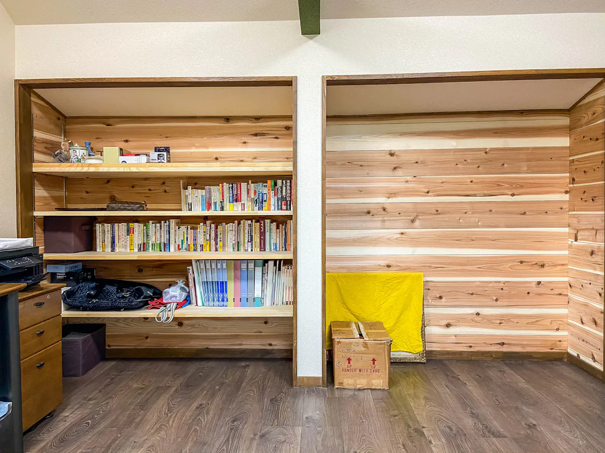 また、機能面において杉材は書斎に非常に適した素材です。多孔質(目に見えない細かな穴が空いている構造)である杉は、周囲の湿度に合わせて湿気を吸放湿する優れた調湿作用を持っています。これにより、湿気を嫌う大切な書籍や書類、電子機器を保管する部屋の空気環境を整える助けとなります。