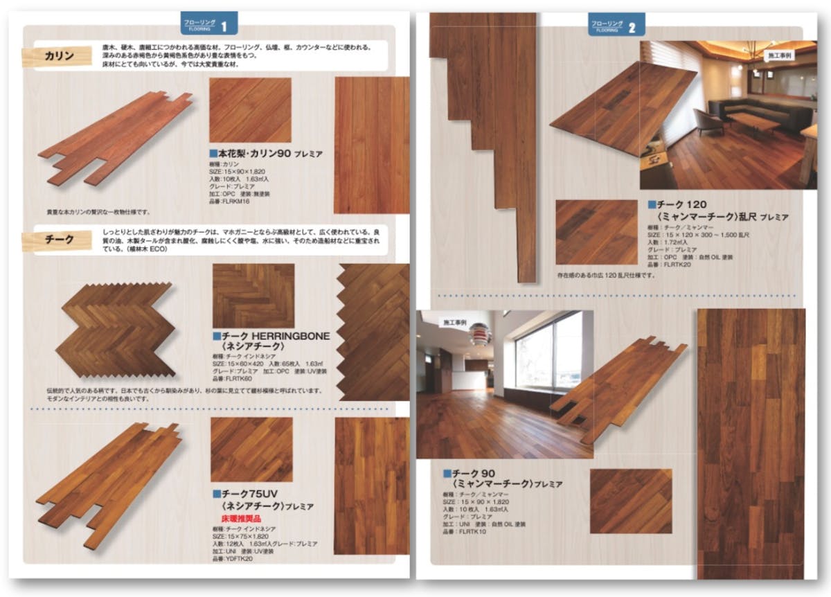 樹種ごとの特徴・色味・質感、施工事例まで分かりやすく掲載しており、
